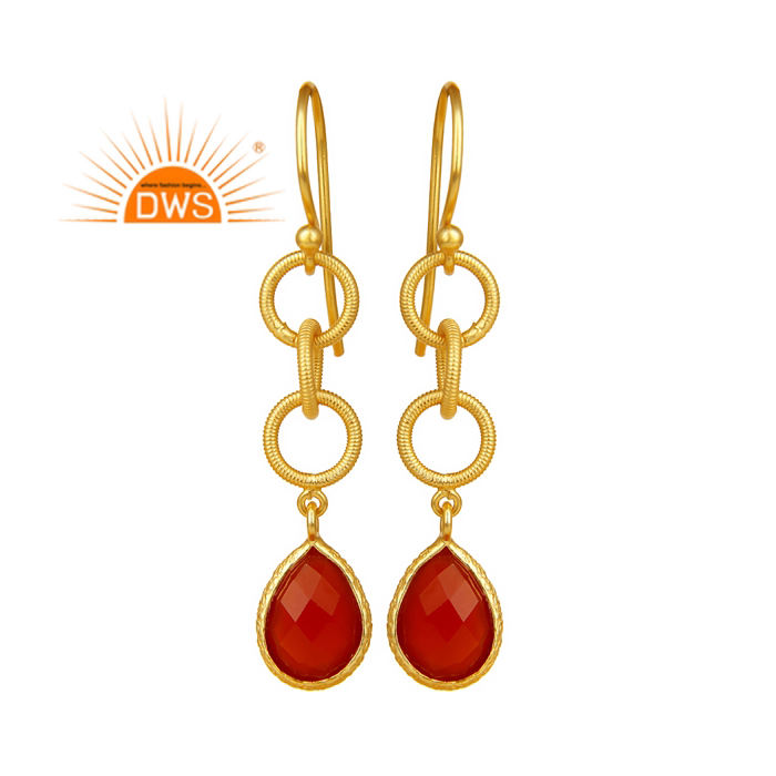 Indian Red Onyx Gemstone Earrings Supplier Multi Circle Link 14k Gold Plated Silver Dangle Earrings Jewelry Classic Collection