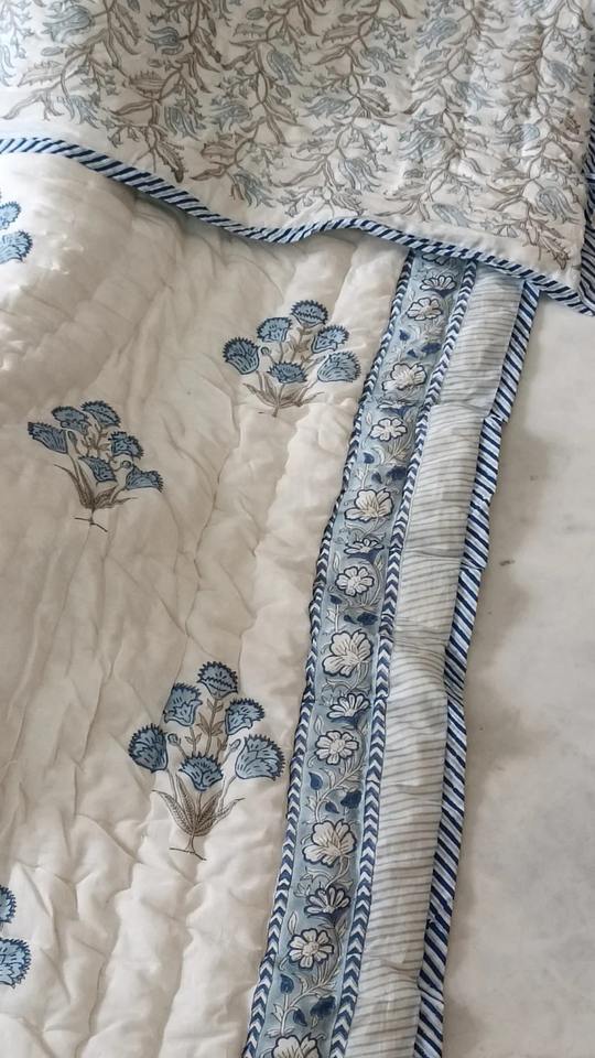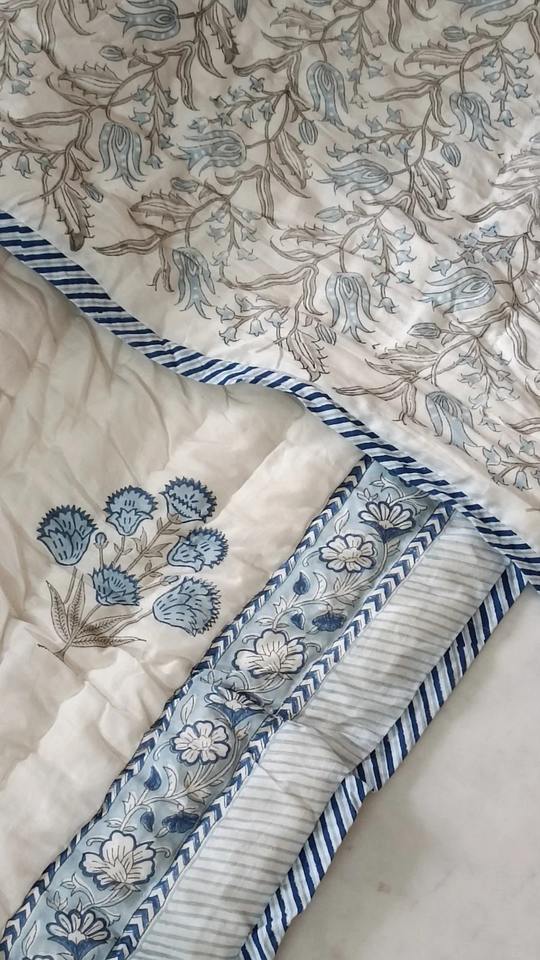 Indian Reversible Jaipuri Quilt Floral Rajai Bedspread Cotton Fill Hand Block Print Ethnic Home Decor Throw Bedding