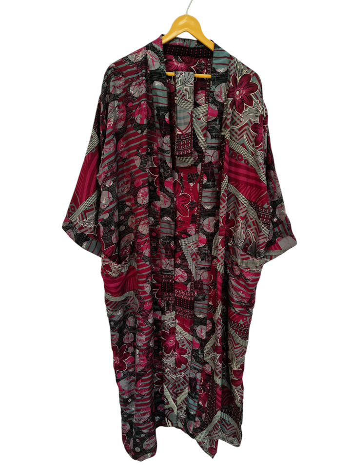 Indian Robe Floral Silk Sari Kimono Vintage Sari Robe Soft Beach Party Gown Indian Handmade Silk Kimono