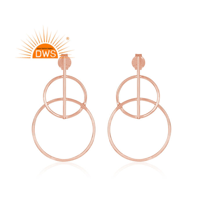 Indian Rose Gold Plated Silver Peace Sign Design Dangle Earrings Manufacturer Jewelry Classic Collection