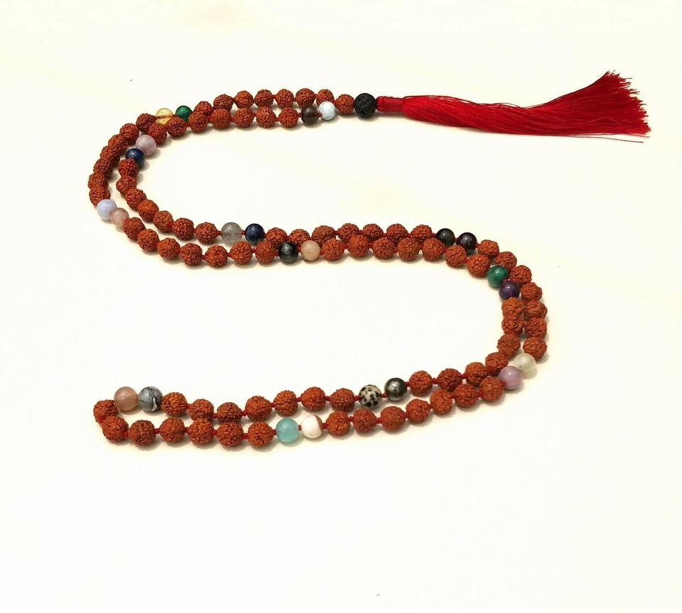 Indian Rudraksha Gemstone Knotted Spiritual Mala Beads