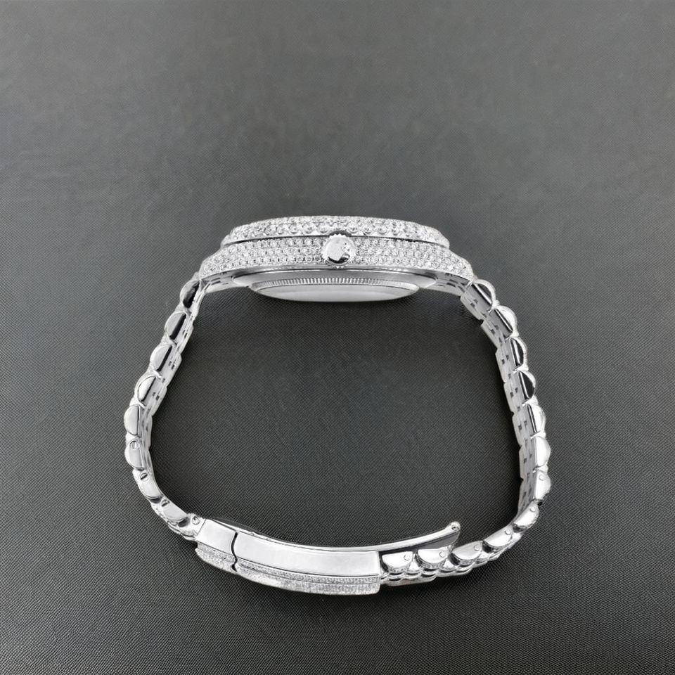 Indian Seller's Moissanite Analog Watch - Arabic Numerals Dial Edition, Hand-Set Moissanite Watch with Steel Belt at Cheap Price