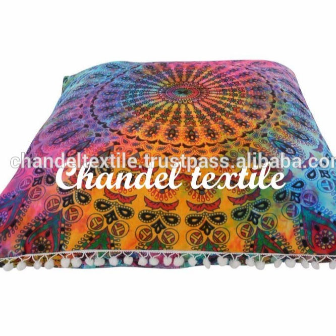 Multicolored Ethnic 26'' Cotton Cushion Cover Shams Woven Pom Pom Square Tapestry Mandala Throw Cases for Home Hotels Christmas