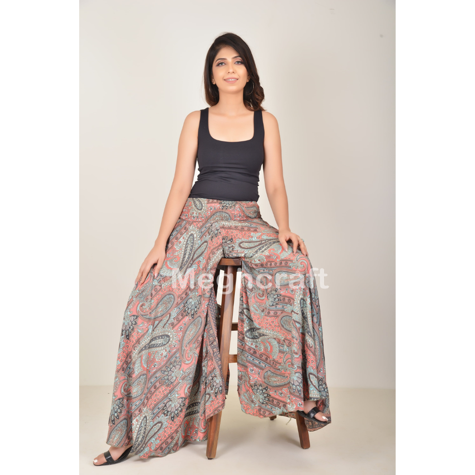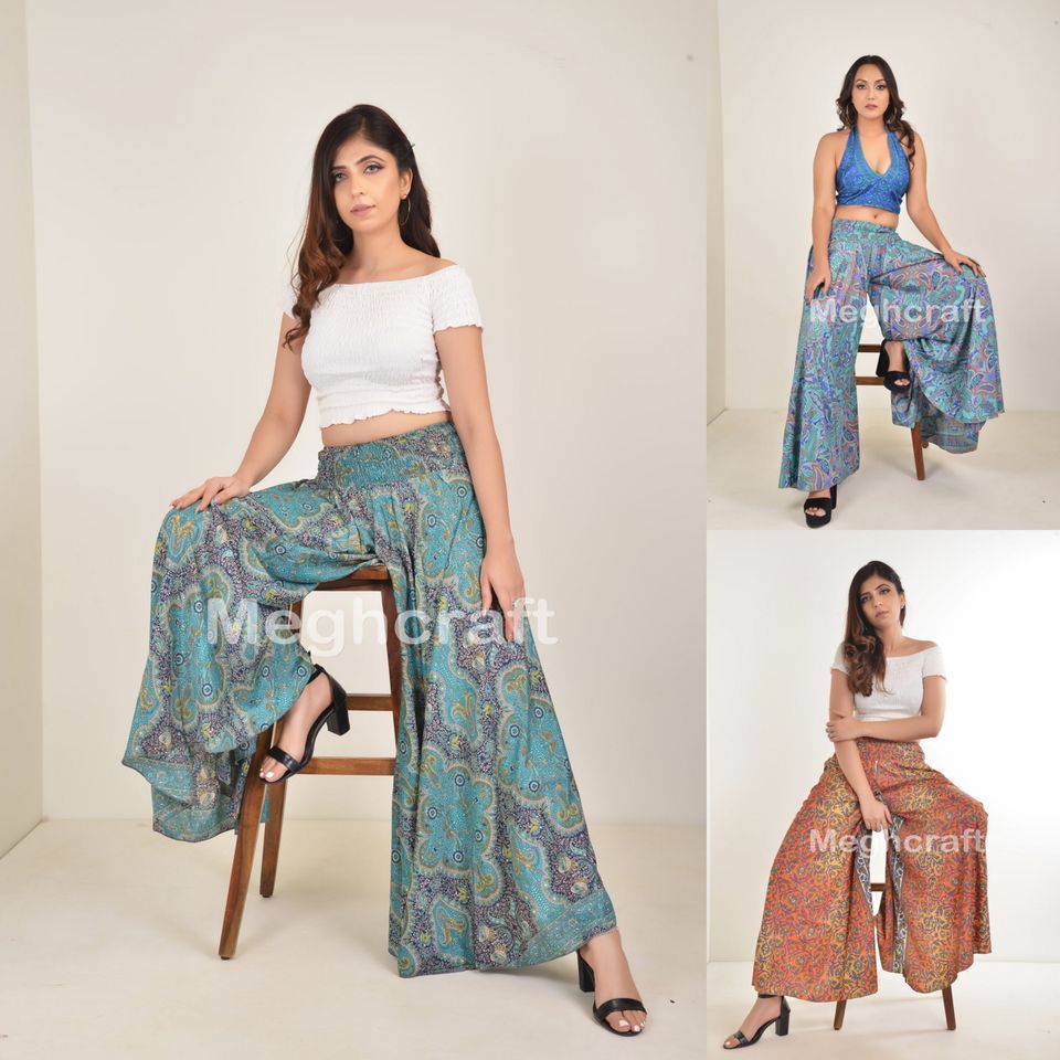 Indian Silk Bohemian Palazzo Pant Trouser Wide Leg Flare Pants with Mid Waist Plus Size and Breathable Feature
