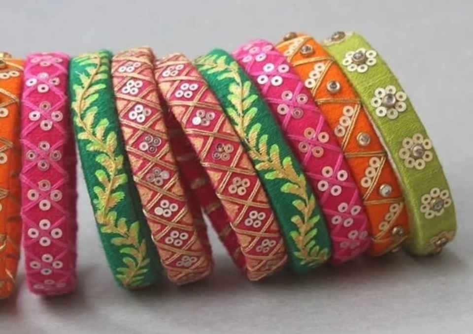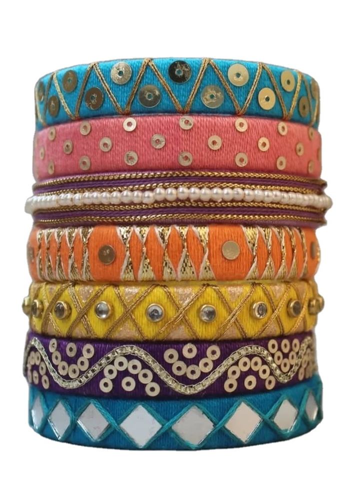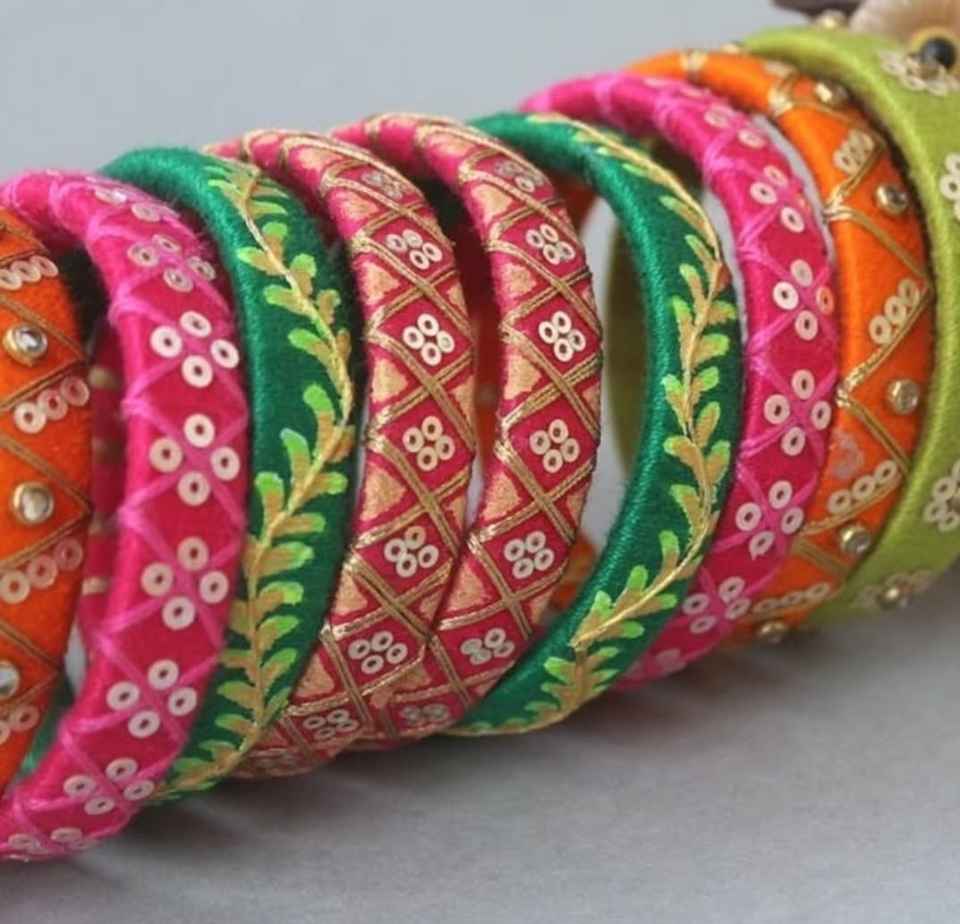 Indian Silk Threaded Handmade Gota Lace Kundan Bracelet Bangles With Stone Work Bangle Exclusive Bangles with Pearls