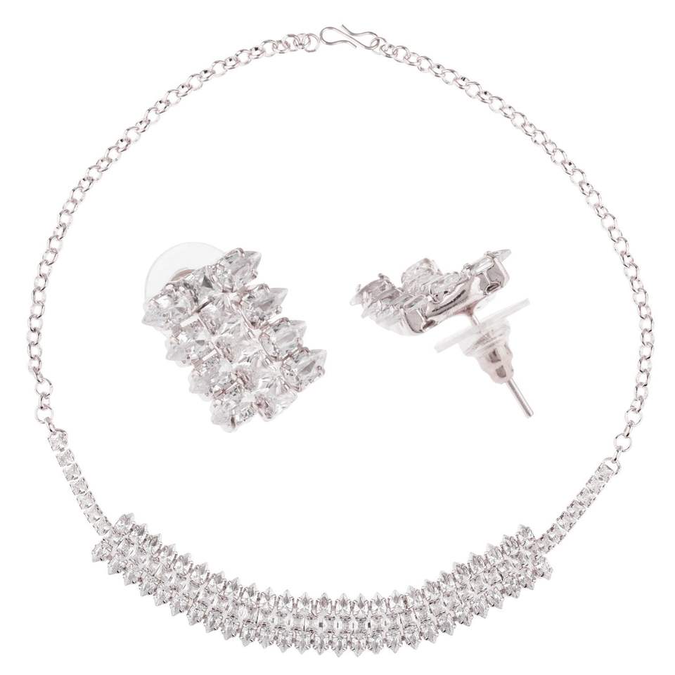 Design:Bridal jewelry set, classic delicate designer silver tone chain choker