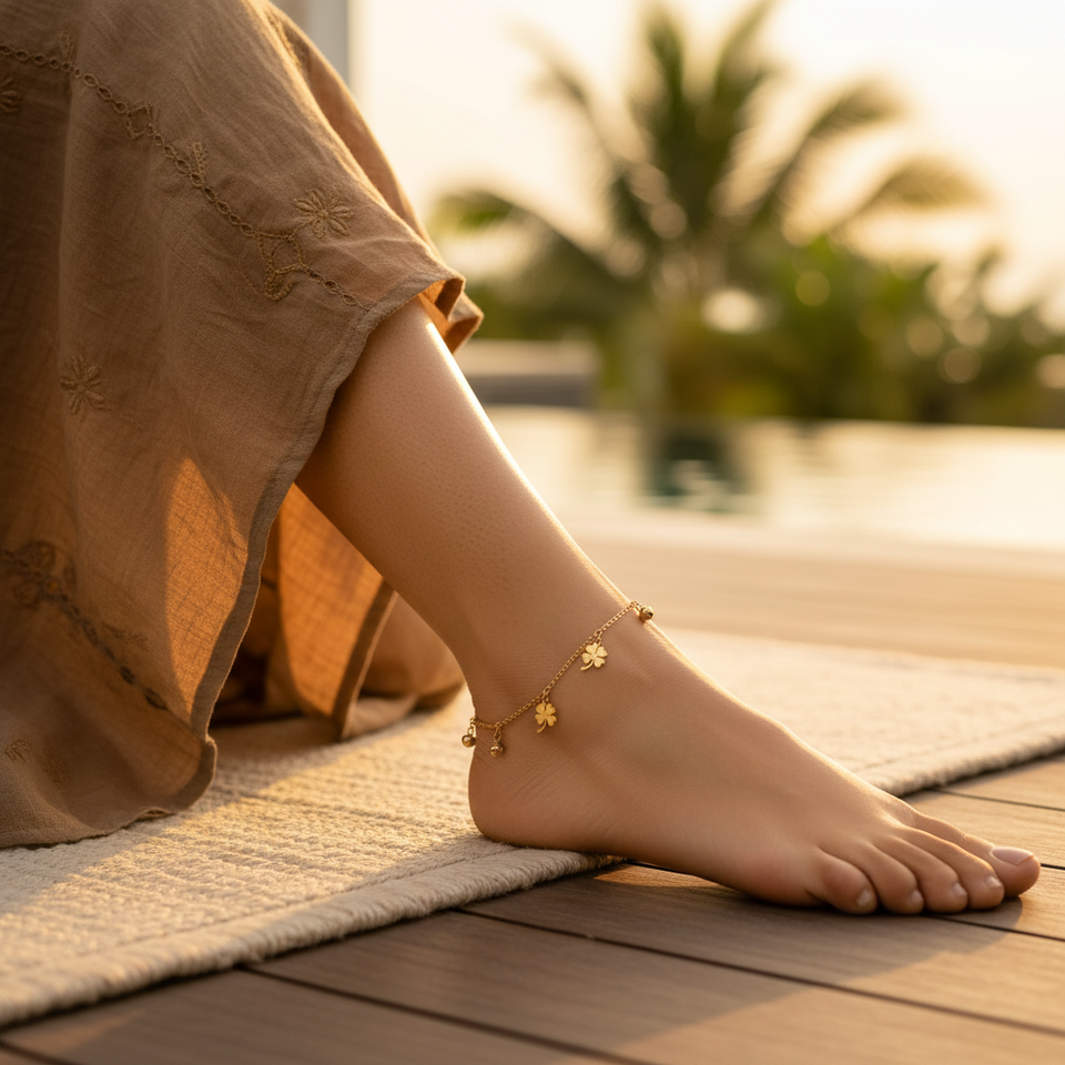 Indian Style Beautiful Shiny Gold Clover Charm Anklet - Elegant Ankle Jewelry for Women and Girls Wear in Wedding Party's