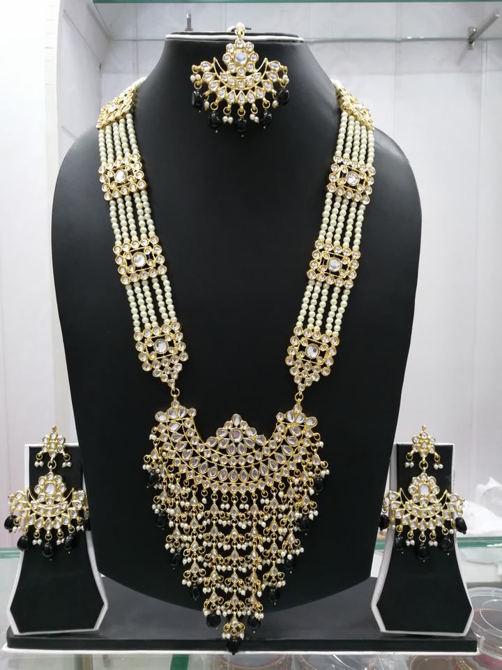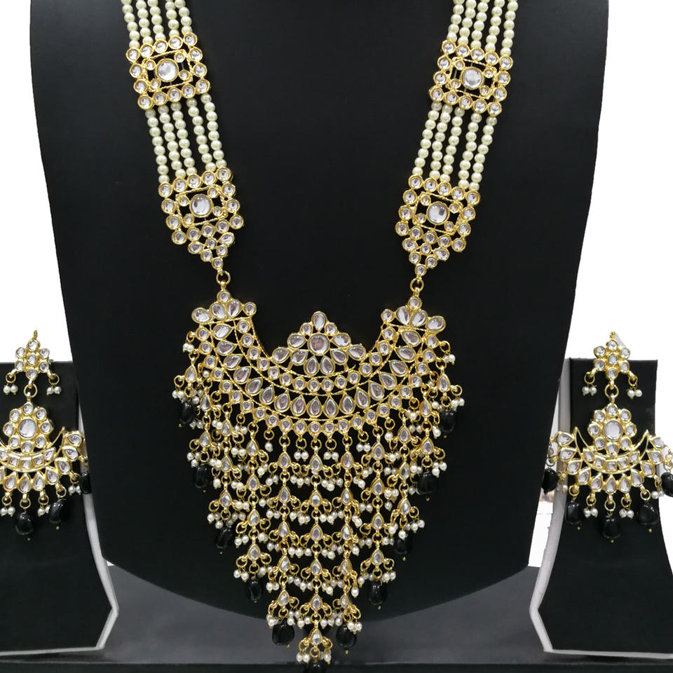 Indian Stylish Layered Pearl Rani Haar Long Kundan Necklace Jewellery Set Wedding Engagement Party Gift Antique Gold Plated