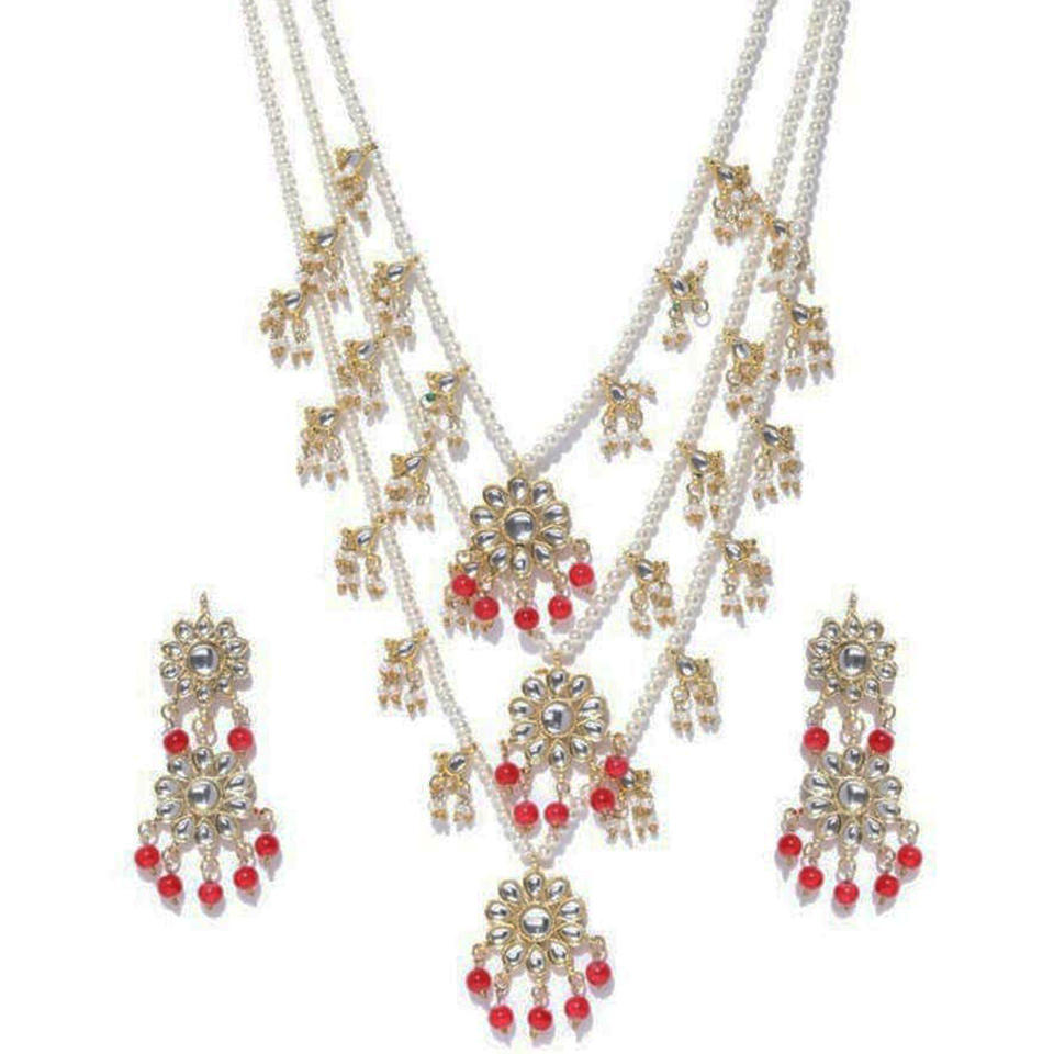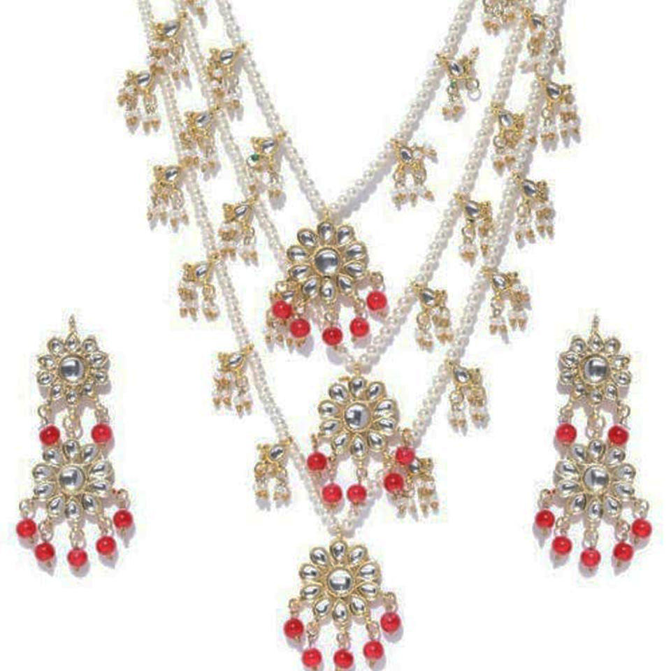 Indian Stylish Layered Pearl Rani Haar Long Kundan Necklace Zircon Alloy Jewellery Set Wedding Engagement Party Gift Hiphop Gold