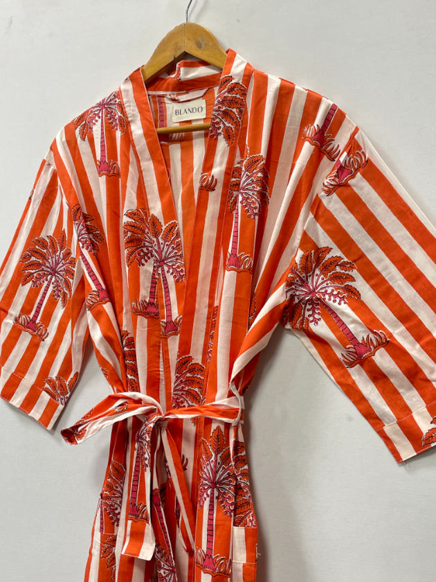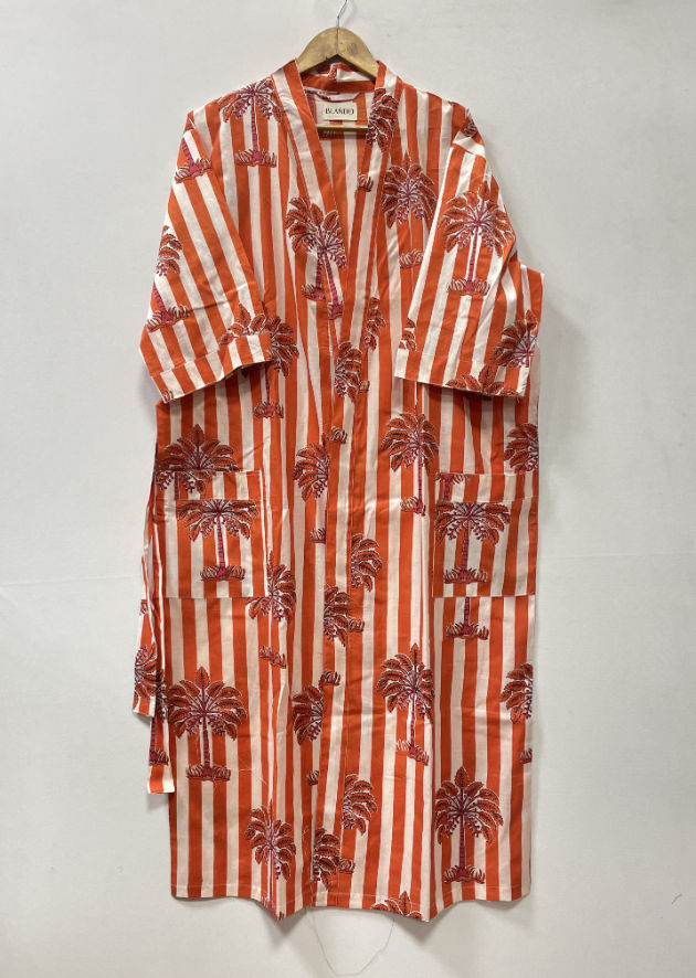 Indian Summer Floral Luxury Vintage Cotton Soft Front Bikini Print Kimono Robe Dress Women Long Beach Cover Swim Night Sleep