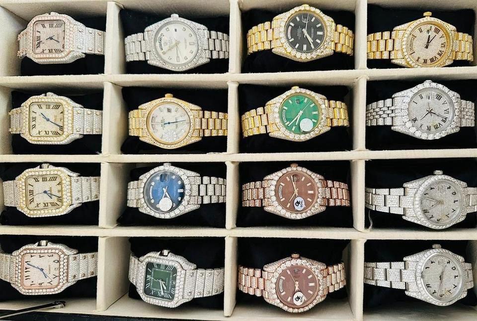 Indian Supplier Bold Stylish Diamond Luxury Men's Watch Leather Strap Polished Stainless Steel Case Waterproof Pointer Sapphire