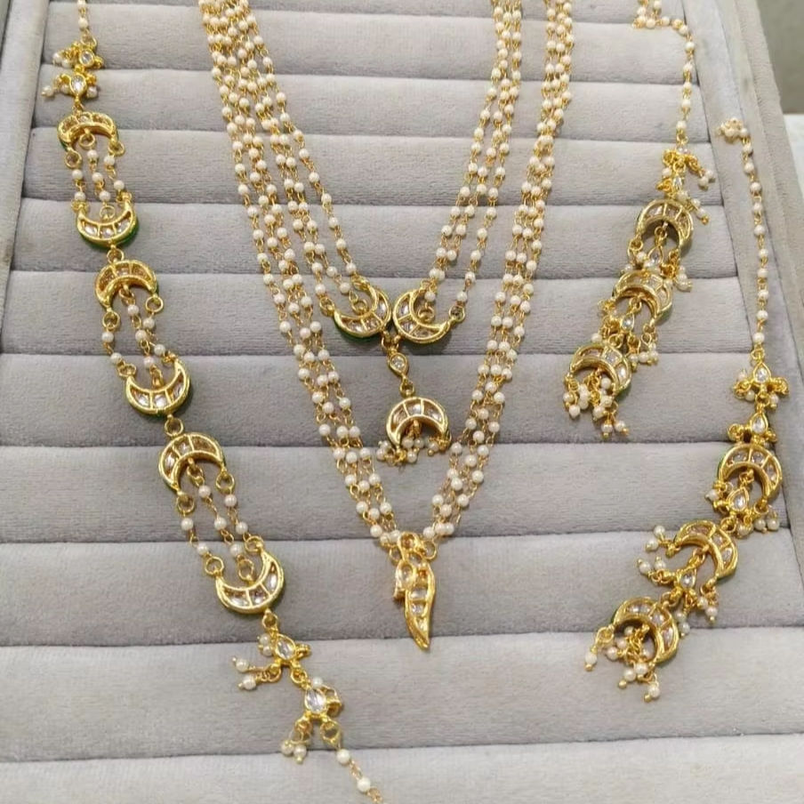 Indian Supplier Gold Plated Brass Necklace with Pearl Combo Ethereal Bridal Jewelry Set for Girls Women for Parties Weddings