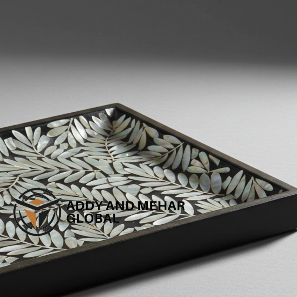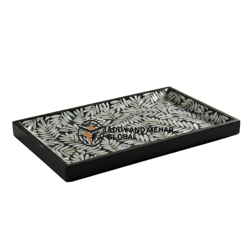 Indian Supplier Luxury Mother of Pearl (MOP) Rectangular Serving Tray Black & Iridescent Crystalline Mosaic