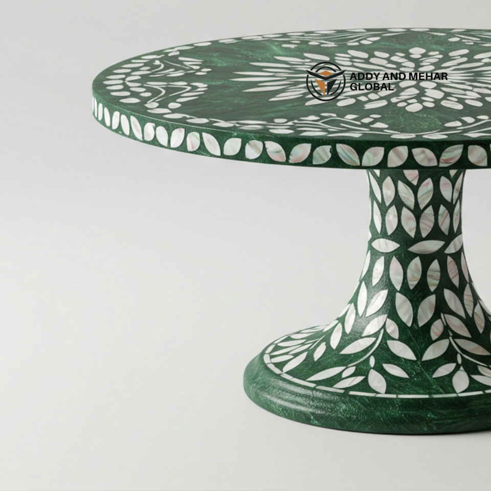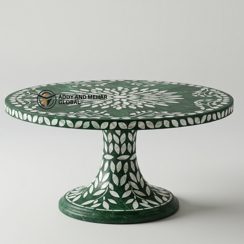Indian Supplier Offers Elegant Round Cake Stand with Mother of Pearl Inlay Plate and Dishes Tools for Sale