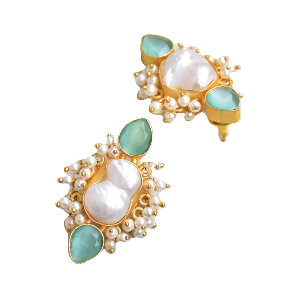 Fashion Brass Dangle Earrings Export Pearl Authentic Gemstone Jewelry Rhodium Plated Brass Unique Designer Pattern Ready to