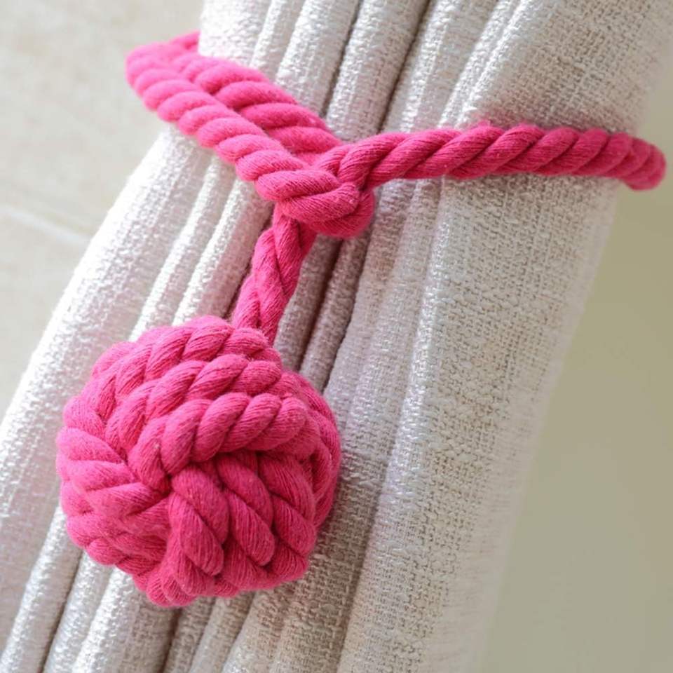Indian Supplies Hand Woven Macrame Cotton Rope Ball Design Curtain Tie Back for Farmhouse Living Room Home Resort Decoration