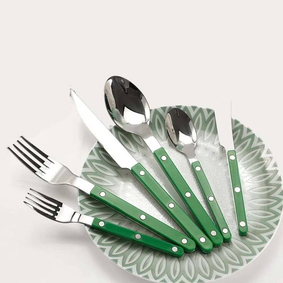 Indian Supplies Plain Dark Green Resin Handle Handmade Metal Stainless Steel Cutlery Luxury Flatware Set