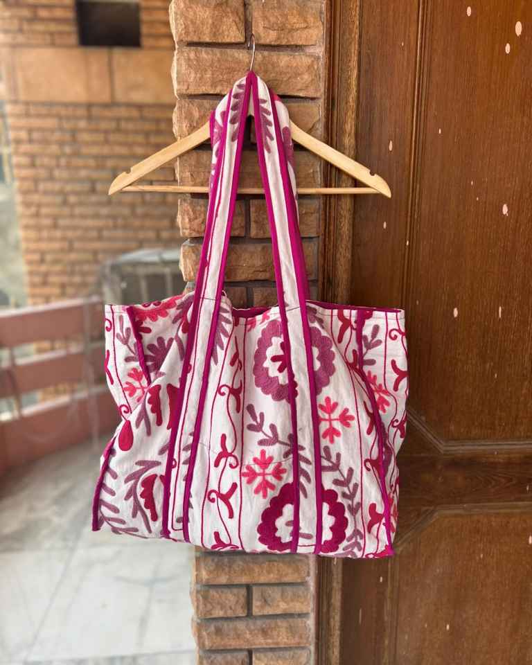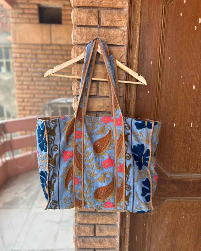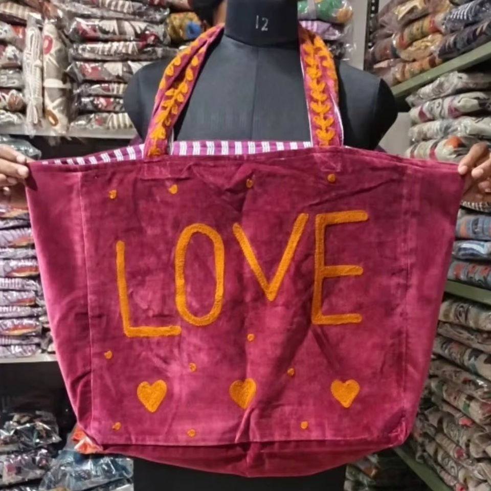 Indian Suzani Bags Hand Stitch Embroidery Shopping Bags Womens Traveling Bags Love & Birds Bag One Pocket Shopping Bags