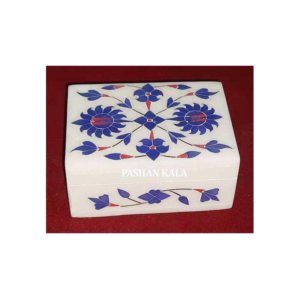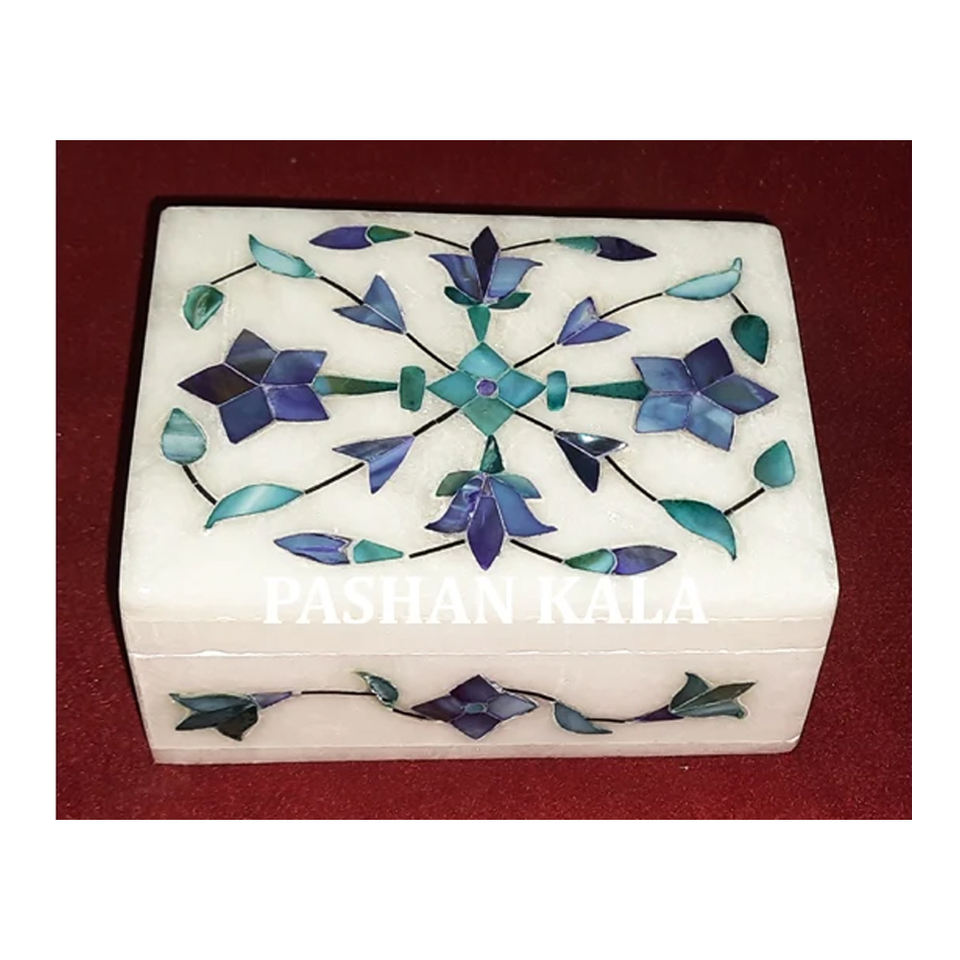 Indian Best Quality White Marble Handmade Inlay Work Rectangular Shape Jewelry Gift Box For Decoration And Business Gift Purpose