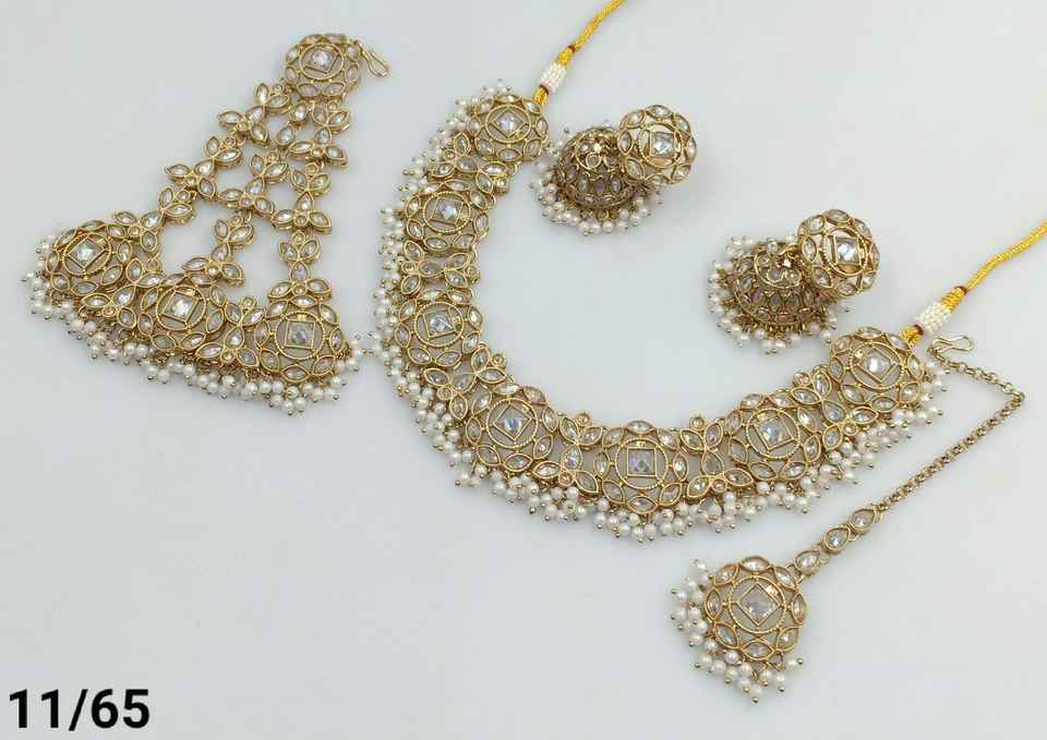 Flower Latest Indian Jewelry Traditional GoldPlated Motipearl With Jumkha Earring &Maagtika Pasha Combo Necklace Set Women