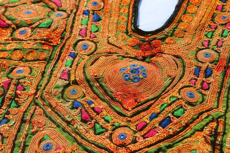 Indian Traditional Banjara Fabric Hand Embroidered Mirror Work/ Old Fabric to Decorate Your Clothing