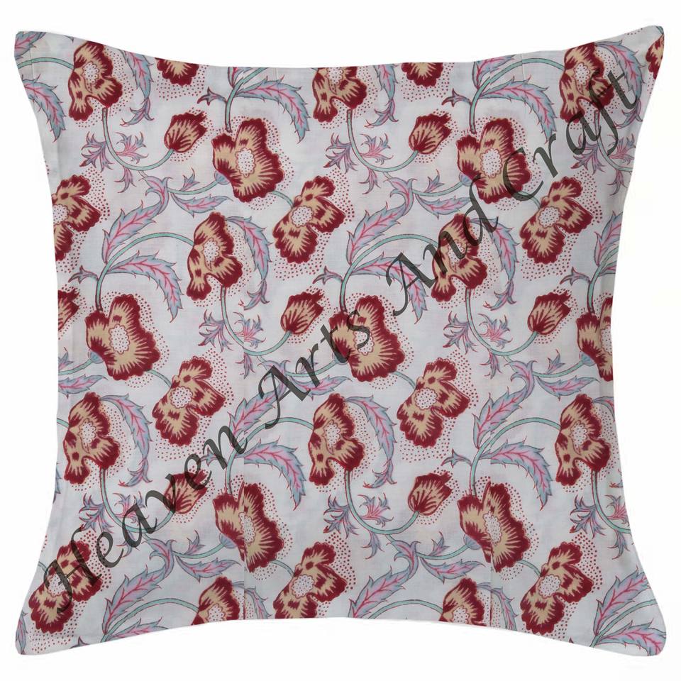 Indian Traditional Cotton Cushion Cover 16 Inch Christmas Ethnic Hand Block Print For Home Use Wholesale Indian Cushion