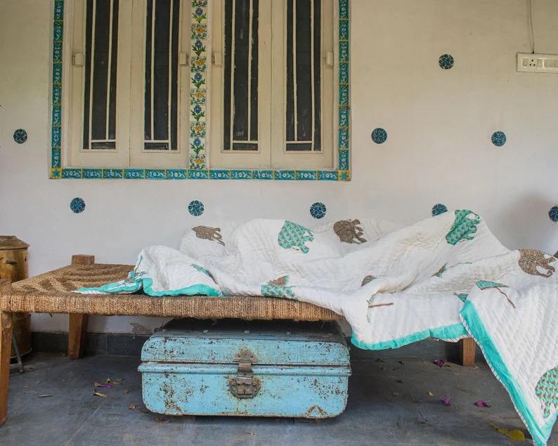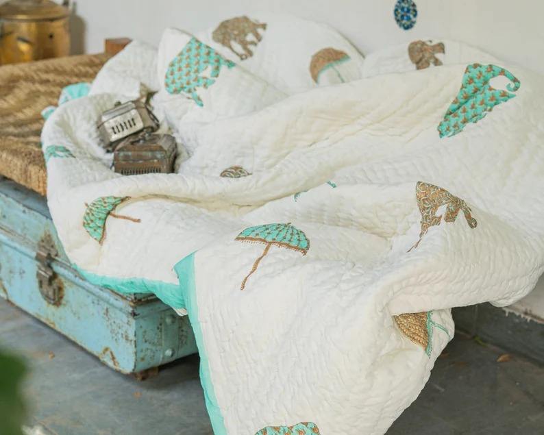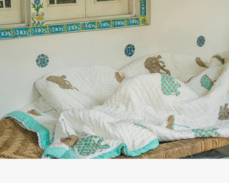 Indian Jaipuri Block Print Quilt
