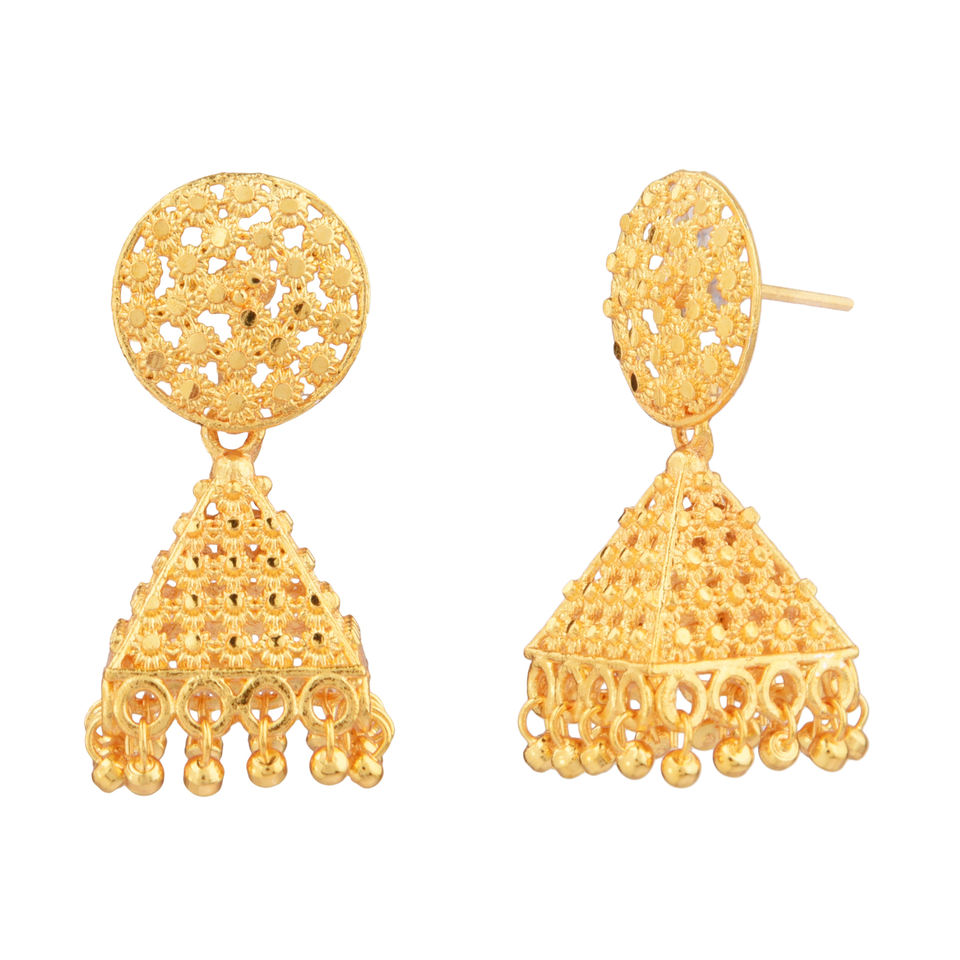 Indian Traditional Dubai Style Bridal Earrings Supplier Gold Plated Round Jhumka Jhumki Jewelry Set for Women