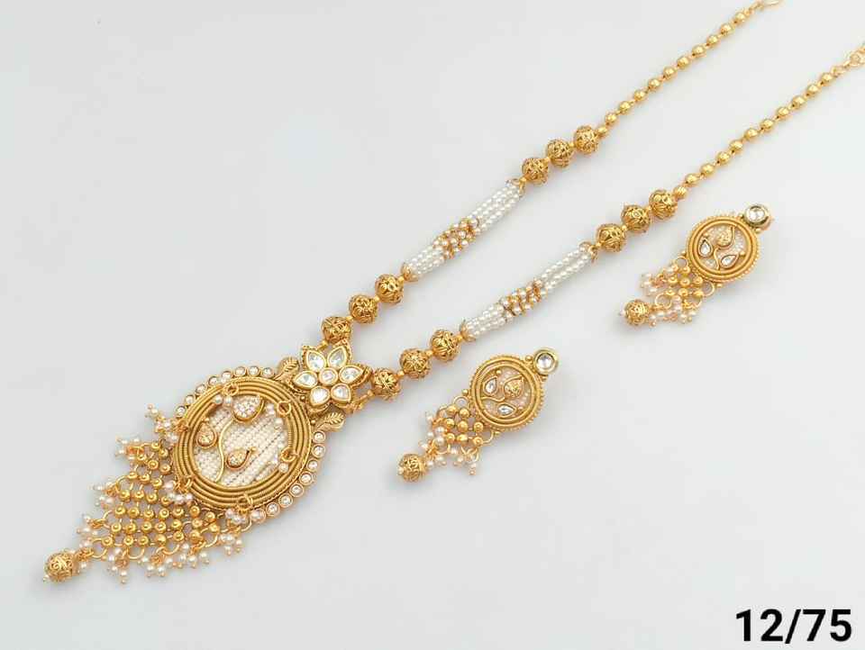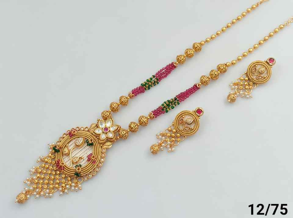 Indian Traditional Ethnic Gold Plated Copper Bridal Wedding Jewelry Set for Women Earrings and Necklace