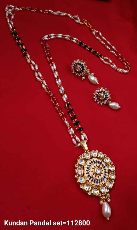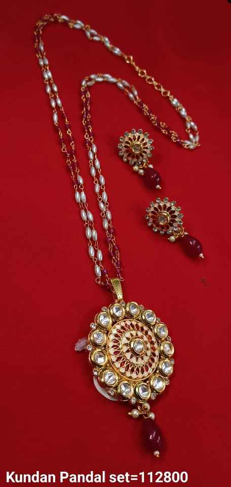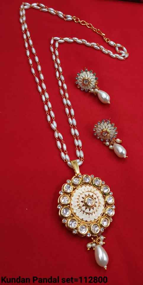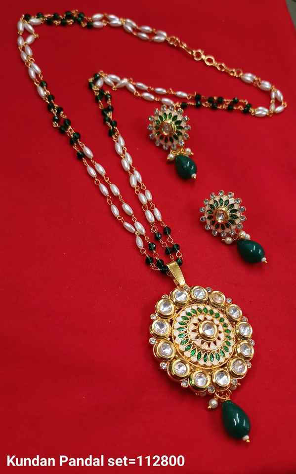 Indian Traditional & Fashionable Gold Plated Flower Stylish Drop & Kundan Copper Pendant Necklace Set for Women with Chain