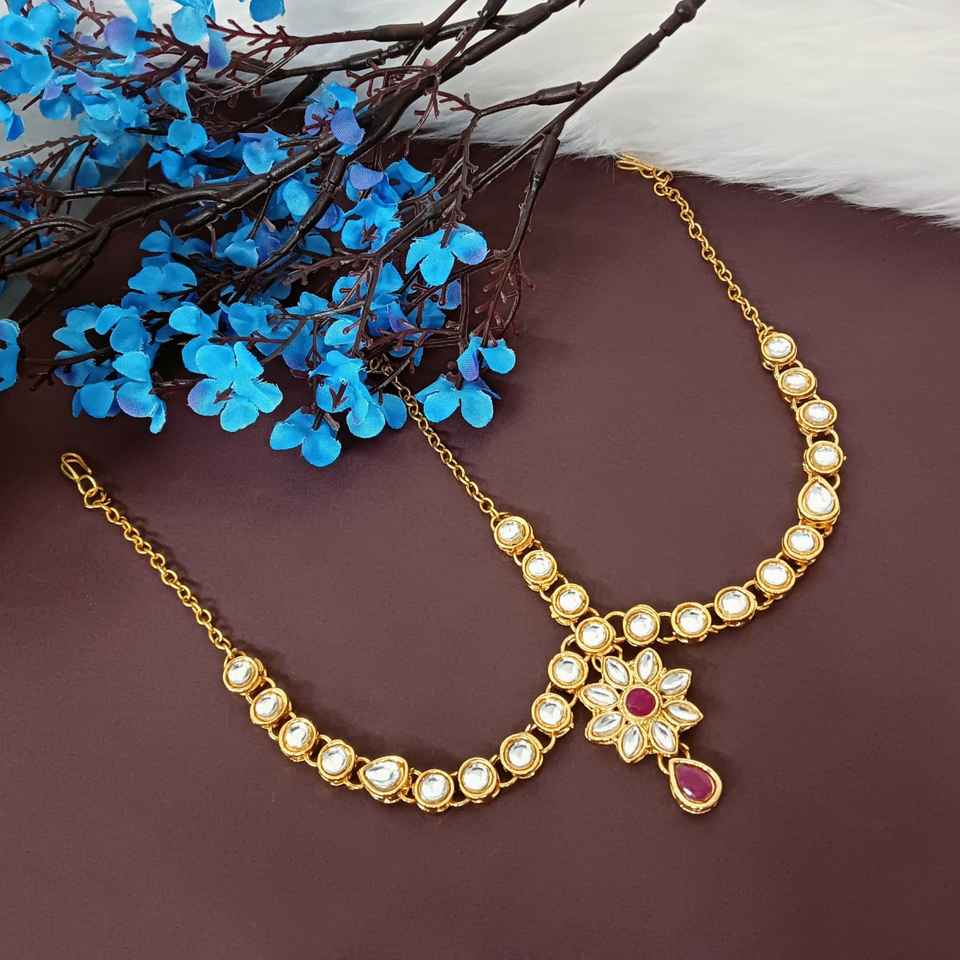 Indian Traditional Flower Design American Orange and White Kundan Diamond 14k Gold Plating Mangtika for Women and Girls
