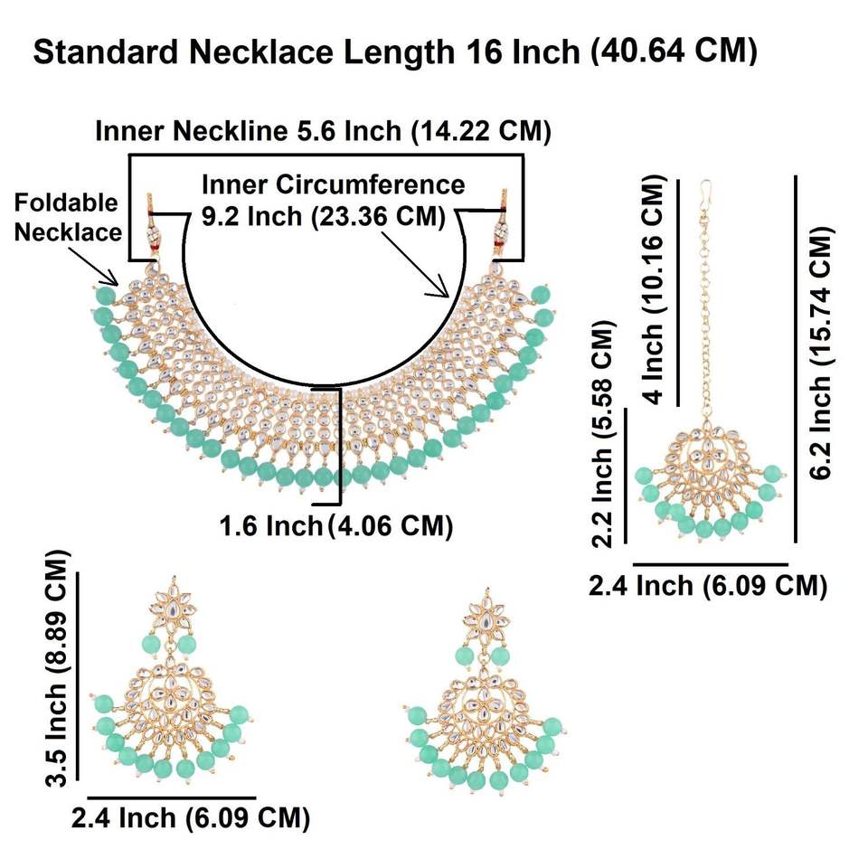 Indian Traditional Gold Plated Kundan Choker Necklace Chandbali Earring Mangtikka Bridal Jewellery Set, Mint