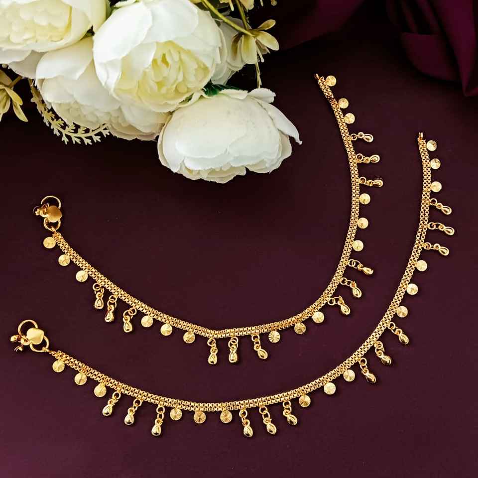 Indian gold plated anklet set is designed in style
