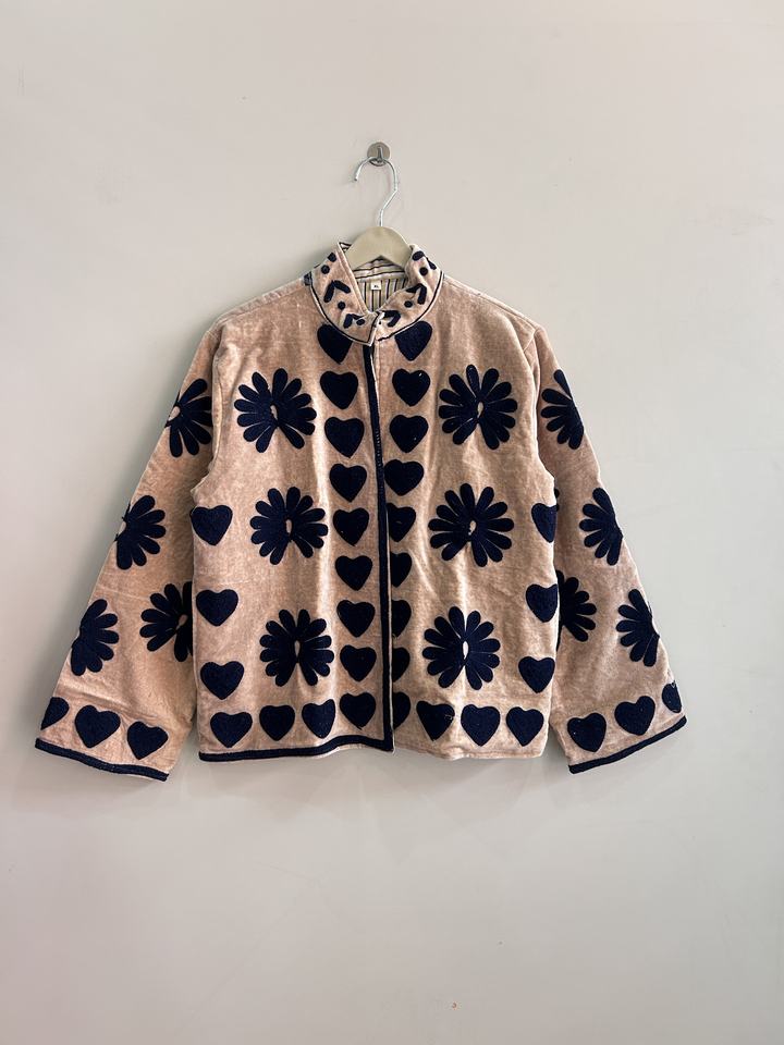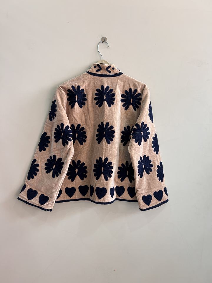 Indian Traditional Handmade Suzani Embroidered Jacket For Women Velvet Fabric Short Coat