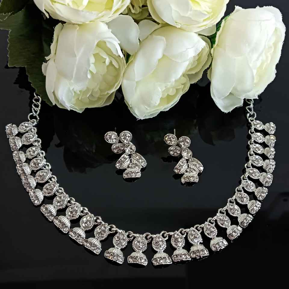 Design:Bridal jewelry set, classic delicate designer silver tone