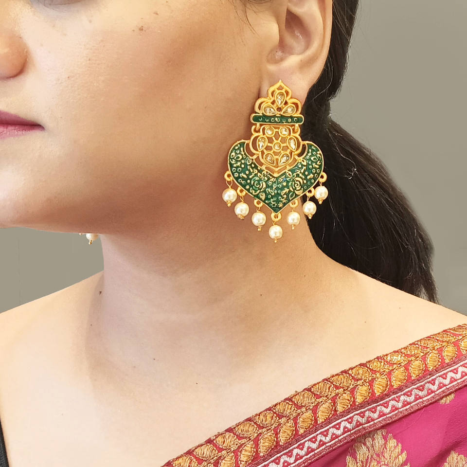 Indian Traditional Jewellery Indian Antique Jewellery Faux Pearl Enamel Crystal Drop Dangle Indian Earrings Set, Green