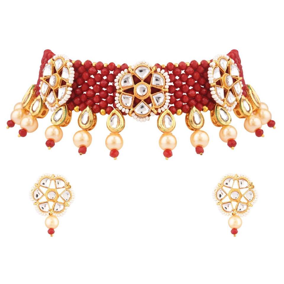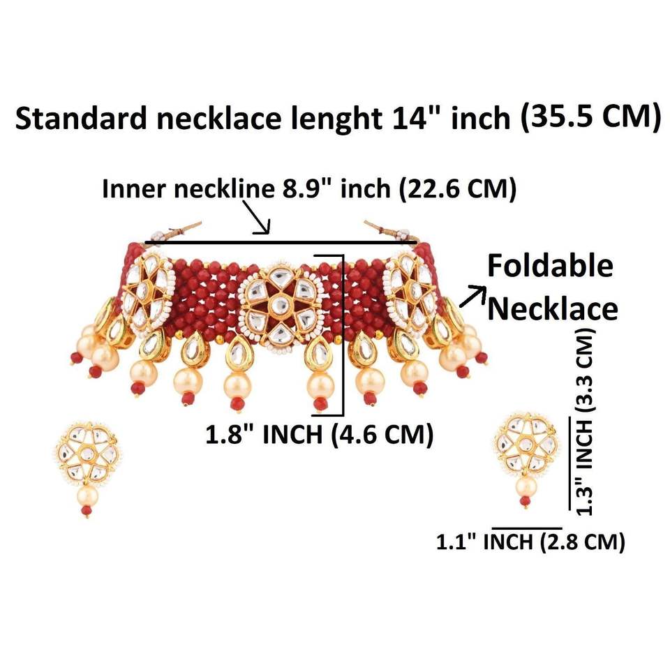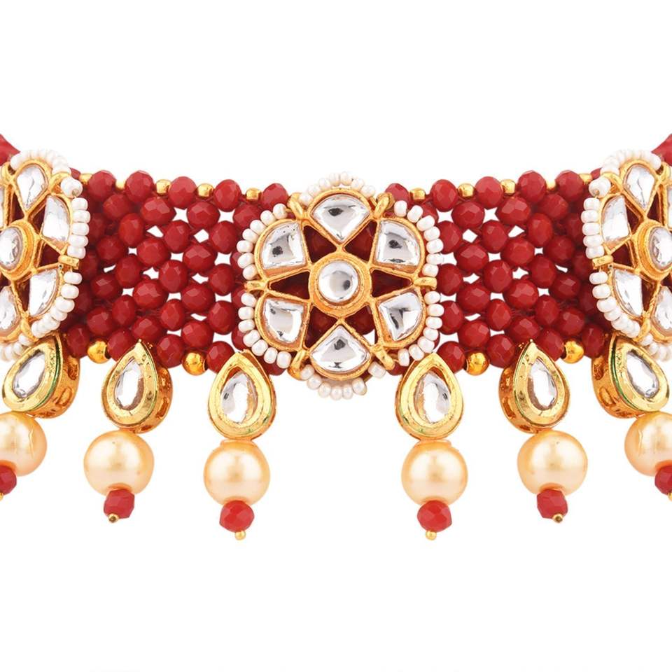 Indian Traditional Jewellery Kundan Faux Pearl Multi Layered Beaded Choker Bridal Necklace Jewelry Set For Women, Maroon