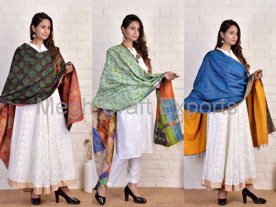 Indian Traditional Kantha Hand Embroidery Reversible Dupatta Stoles - Designer Embroidered Stoles Dupatta -Wholesale Dupatta
