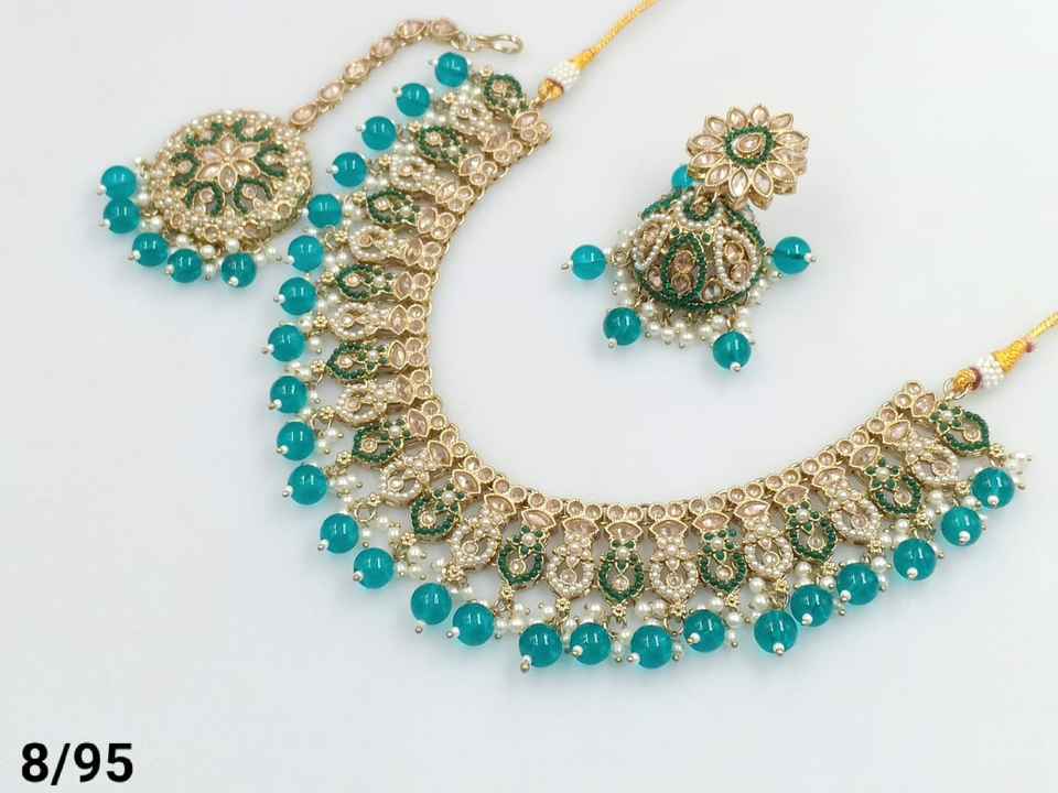 Indian Traditional and Fashionable Gold Plated & Round Choker Necklace Set With Jumkha Earring & Maagtika Necklace Set for Women