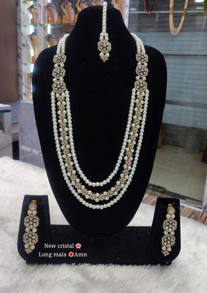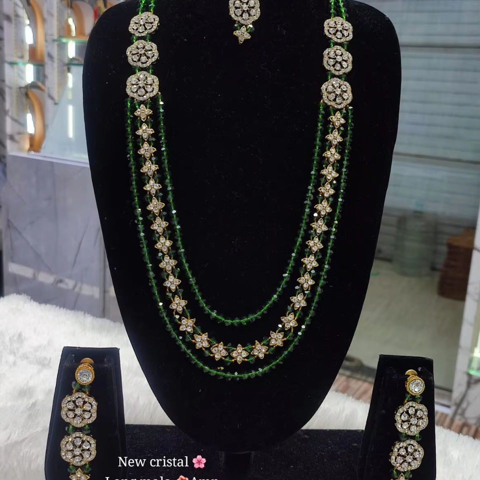 Type:Green Pearl & Kundan Studded Necklace Jewellery Set