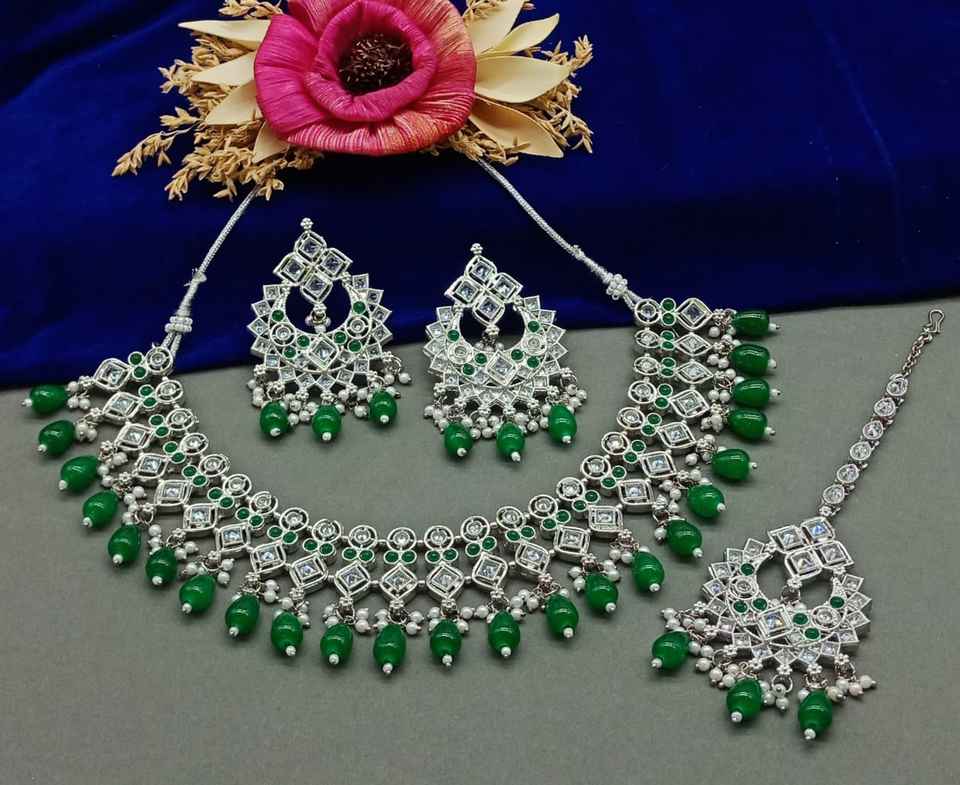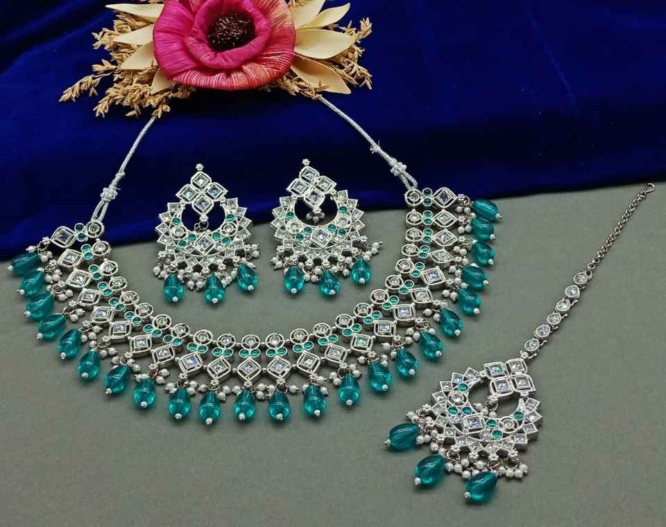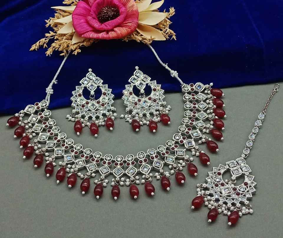 Indian Traditional Kundan Silver Plated Jewellery Set and Copper Necklace Set for Women & Girl Indian Accessories Jewlery Women