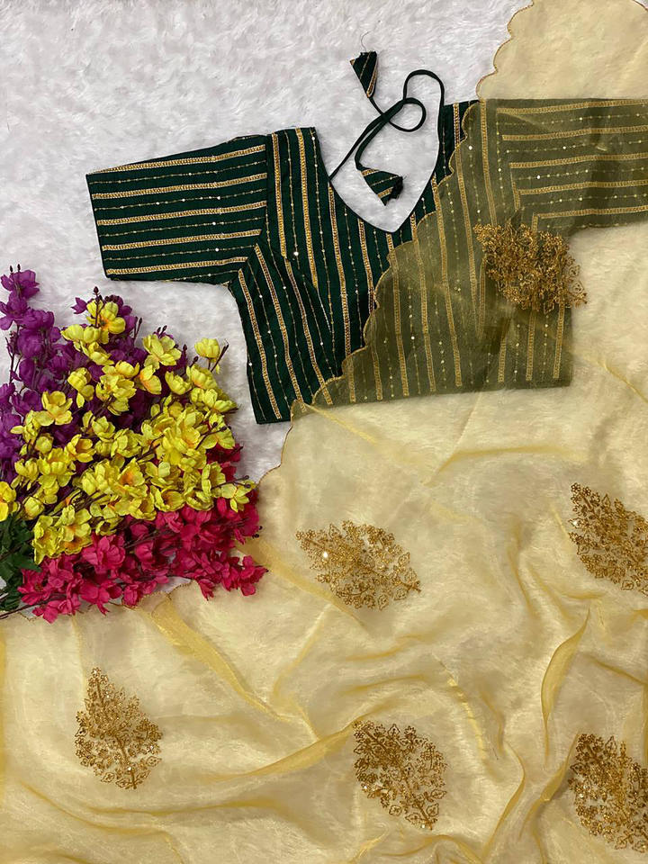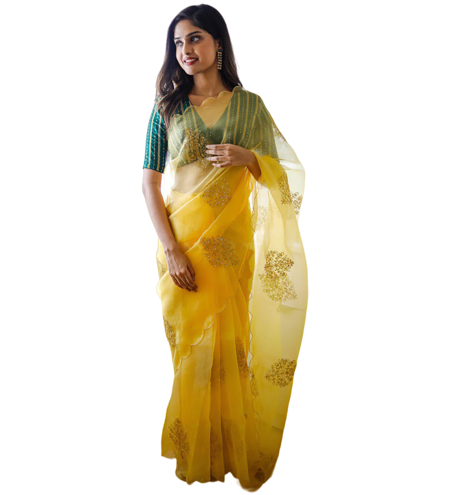 Product Name:Women's Yellow Organza Saree