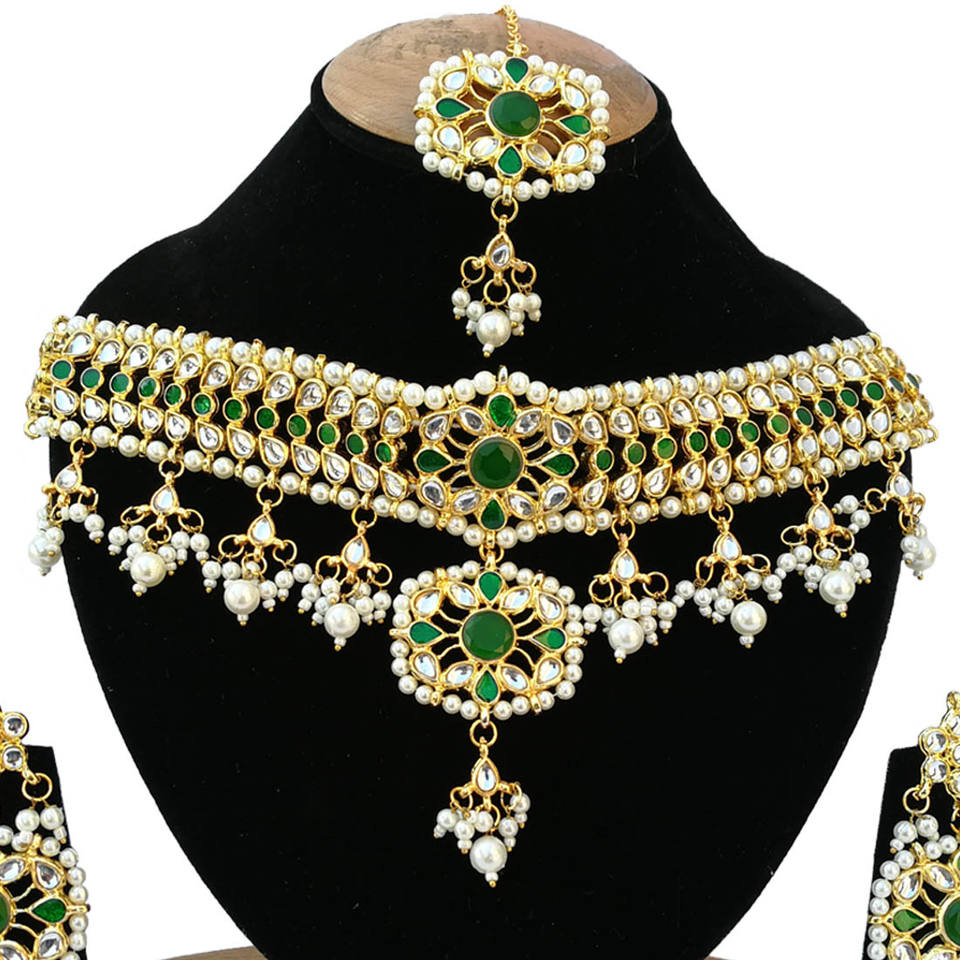 Indian Trendy Classic Choker Engagement Wedding Anniversary Party Jewelry Set Traditional Crystal Kundan Faux Pearl Gold Plated