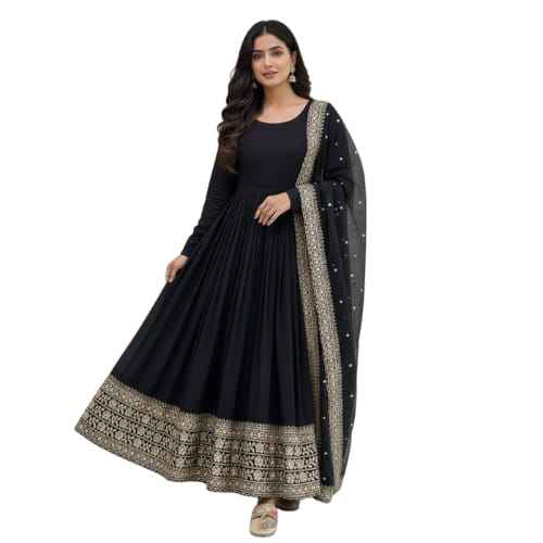 Indian Trendy Fashion for Women Long Banglory Silk With Embroidery Anarkali Kurti Gown With Dupatta Wedding Partywear Suit
