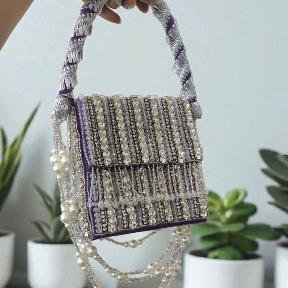 fashionable stone touch beaded flap bag handmade evening purse womens premium party clutch india
