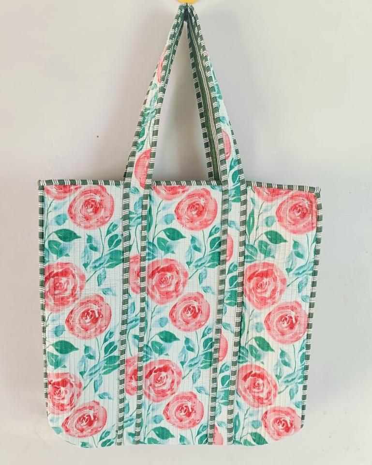 Indian Vintage Bohemian Quilted Cotton Carry Bag Women Single Handle Multicolor Floral Eco-Friendly Sustainable Style Canvas