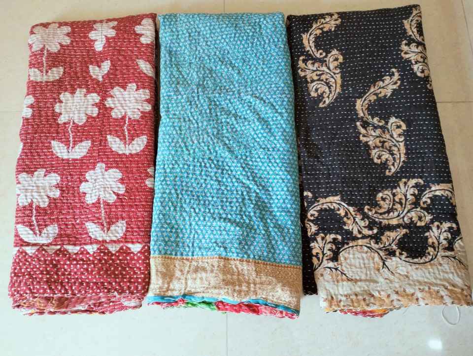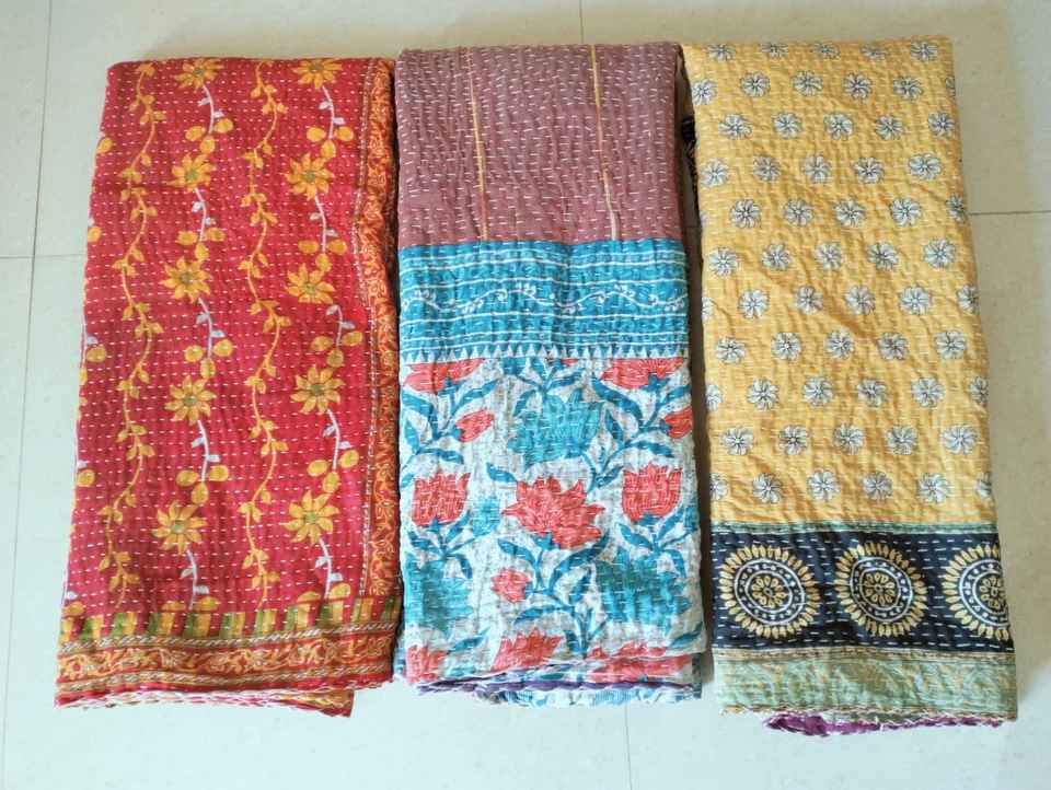 Indian Vintage Cotton Kantha Quilts Wholesaler Multi Color Printed Blankets Handmade Kantha Throws for Home Decoration