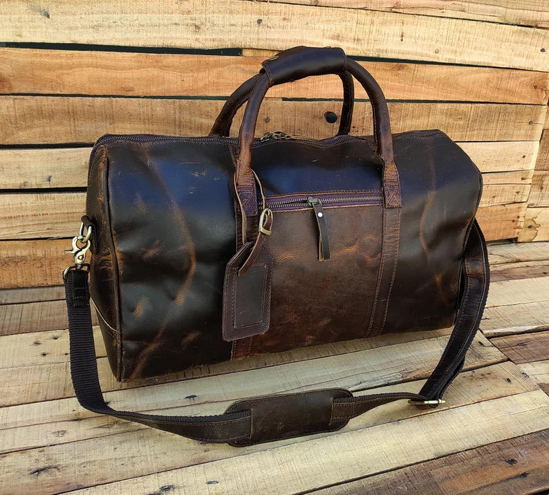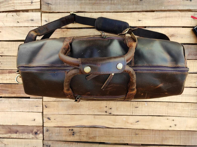 Indian Vintage Handmade Genuine Goat Leather Duffle Bag Custom Travel Outdoor Weekender Fashion Set Handcrafted Original Leather