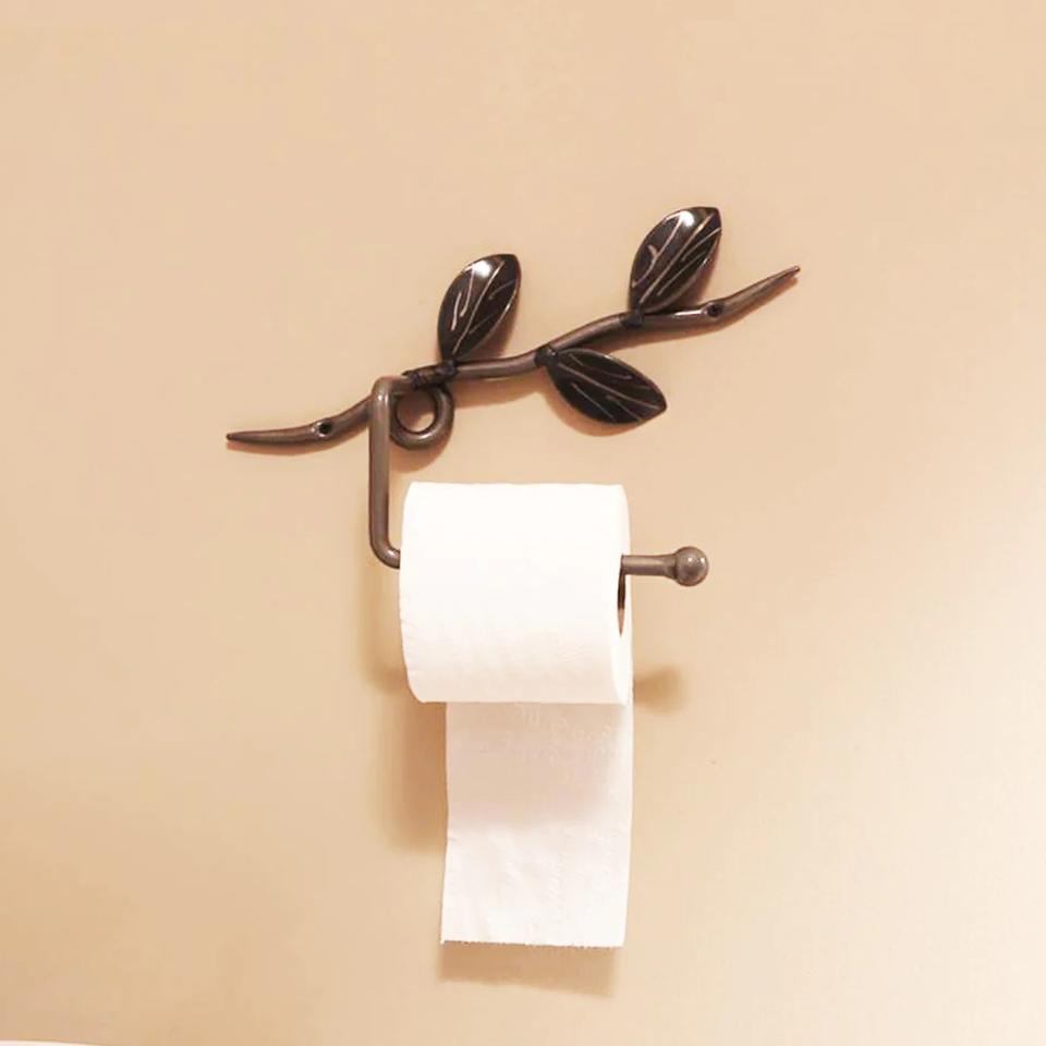 Indian Vintage Heavy-Duty Cast Iron Toilet Paper Holder Wall-Mounted Roll Tissue for Bathroom and Kitchen Black Color