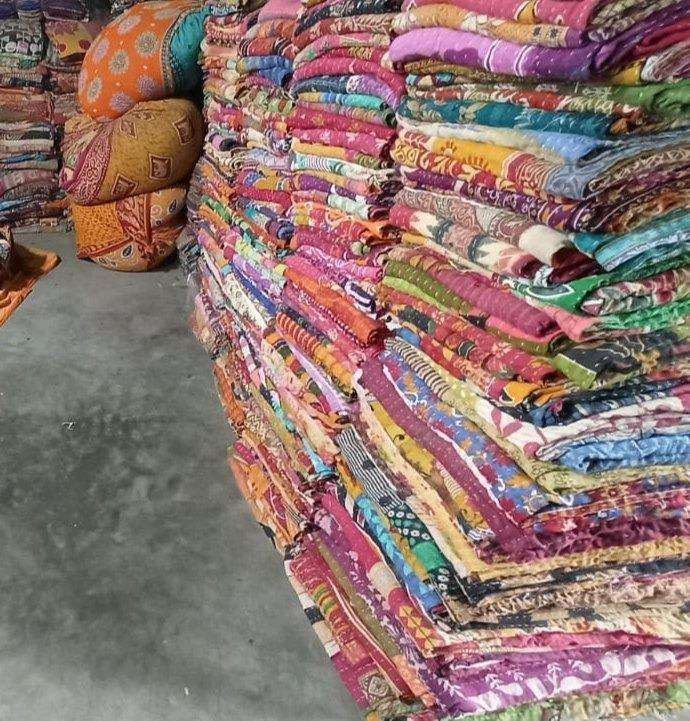 Indian Vintage Kantha Quilt Handmade Antique Indian Sari Quilt Boho Kantha Bedspread With Cotton Filling for Hotels Decor